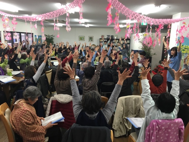 今日もみんなで童謡、唱歌、昭和歌謡曲を歌いながら。